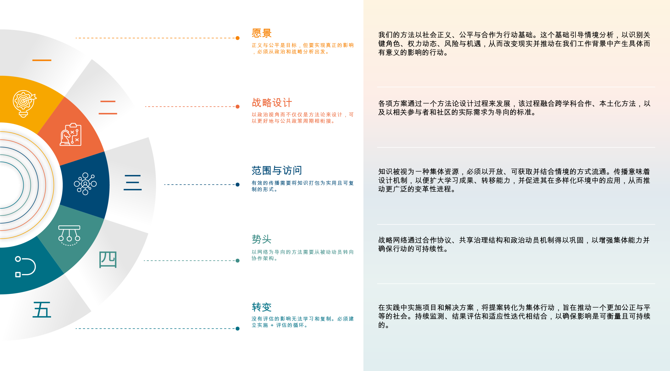 战略干预始于基于正义、公平和合作原则的规范愿景。知识和资源被定位为服务于公共利益,识别杠杆点以引导行动向更包容和可持续的未来。